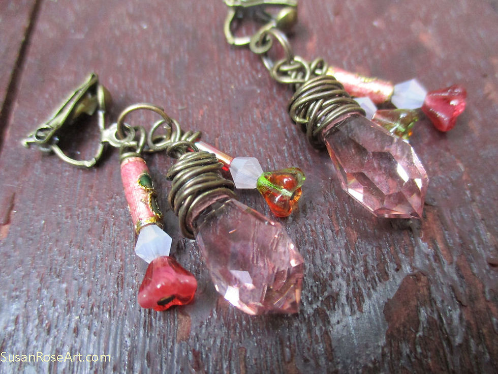 Asymmetrical Glass Petal & Dragonfly Earrings